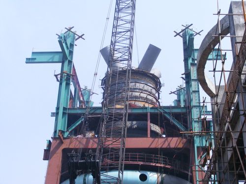 该工程由十七冶承建,高炉炉壳及本体钢结构、设备由十七冶机电公司机装四处承担安装任务.自开工以来,十七冶公司调集精兵强将,采用先进技术装备,经过精心组织、科学施工、攻坚克难,取得显著成效。施工人员凭借丰富的施工经验、过硬的技术、雄厚的实力,以百倍的热情投入到施工当中,加班加点,无论烈日当头还是皓月悬空,施工现场总是闪耀着工人们勤劳的焊花。在短短几个月时间内,完成高炉炉壳制作安装、冷却壁安装试压、高炉本体框架结构制作安装、各类介质管道安装等多项施工任务,目前正在为高炉按期顺利投产做积极准备,受到各级领导一致好评。此外,十七冶九钢项目部在安全、质量以及其他各项管理工作中得到了业主和总包单位的好评。