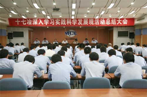 6月25日,十七冶在总部会议厅召开学习实践科学发展观活动总结大会。中冶集团暨中冶股份公司学习实践活动上海企业党工委指导检查组组长程志广、副组长于淑贤亲临大会指导。公司领导康承业、王建国、喻世功、唐灶荣、尹似松出席会议。副总经理喻世功主持会议。全公司处以上领导干部、公司学习实践活动领导小组办公室成员、各单位学习实践活动领导小组办公室主任共150余人参加了会议。