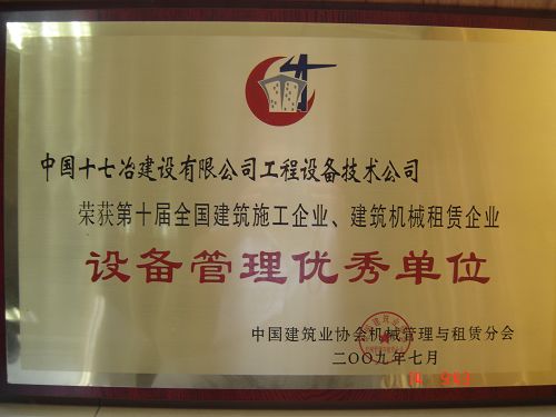 近日,工程设备技术公司被中国建筑业协会机械管理与租赁分会,评为“第十届全国建筑施工企业、建筑机械租赁企业设备管理优秀单位”。公司经理高胜勇同志被评为第十届全国建筑施工企业、建筑机械租赁企业设备管理优秀经理。150吨履带吊司机孟凡军同志被评为第十届全国建筑施工企业、建筑机械租赁企业设备管理优秀工人。