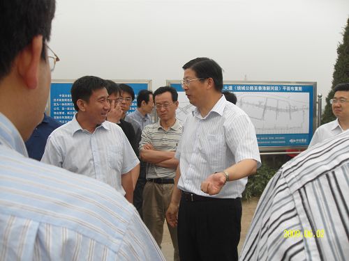 蒋宏坤市长仔细观看了滨江大道跨秦淮新河方案示意图和滨江大道效果图,向业主详细了解了滨江大道工程进展情况;并乘兴视察了滨江大道1.1标段整个施工沿线。蒋宏坤市长对十七冶路桥公司承建的滨江大道1.1标段的工程进度、质量、安全和施工现场的文明施工表示满意,给予了充分肯定。