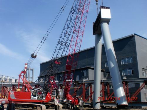 2#高炉主皮带机上料通廊一号支架按期进行吊装,是确保2#高炉8月底投产的一项重要节点。两个月来,项目部十分重视通廊及支架的制作进度与质量,从技术、材料、机械及后勤服务等方面,合理安排工期、人员和机械,积极创造条件,确保通廊和支架如期完成吊装。