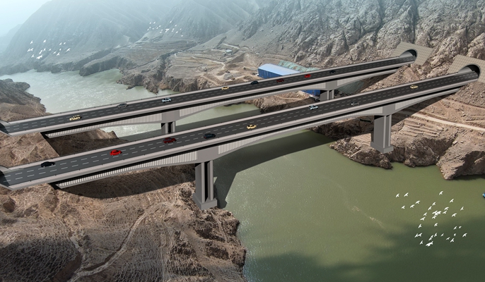 项目位于甘肃省皋兰县及榆中县交界处,由南向北建设大河坪隧道、什川黄河特大桥、上河坪隧道等。什川黄河特大桥作为项目控制性工程,是全线亮点工程之一,其主跨160米横跨黄河,桥型布置为(90+160+90)米预应力混凝土波形钢腹板连续刚构,左幅桥长350米,右幅桥长349米。桥梁主梁采用单箱单室变截面波形钢腹板预应力混凝土连续箱梁,主墩采用双肢实体墩,下部基础采用承台接群桩基础。其中,大体积混凝土承台共有四个,单个尺寸为(13.20×13.20×4.50)米,钢筋用量71.9吨,C30砼设计方量784立方米。