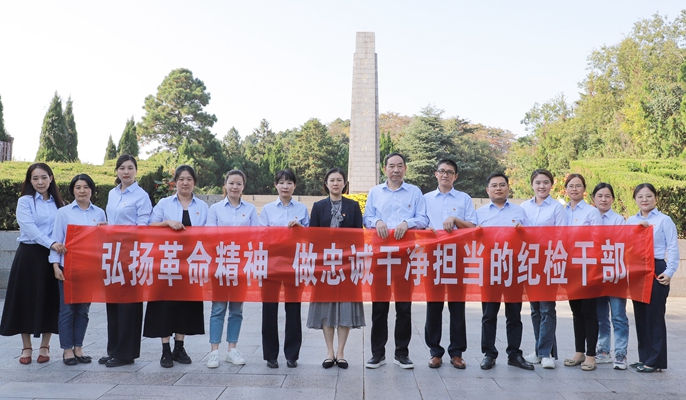 在业务学习环节,大家集中领读了《论党的自我革命》《习近平关于依规治党论述摘编》《忠诚卫士—全国纪检监察系统先进典型风采录》等,并围绕“坚持党的自我革命、提高党的执政能力、严明党的政治纪律”主题,结合工作实际展开交流研讨。在实地践学环节,大家前往马鞍山市濮塘烈士陵园开展革命传统教育,面向党旗,重温入党誓词,坚定理想信念。