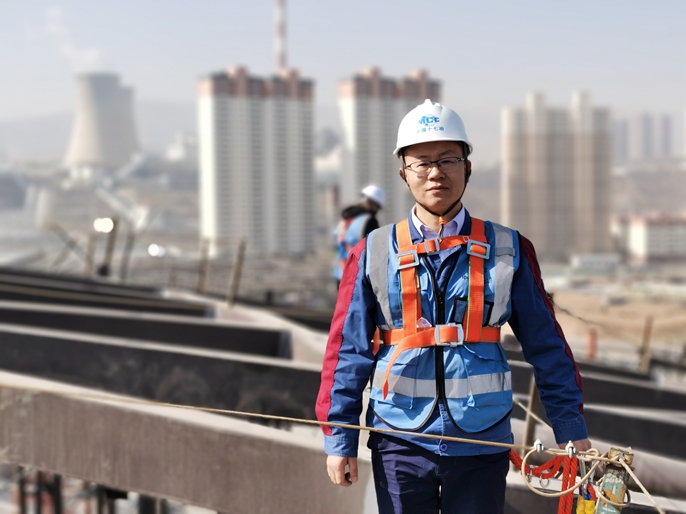 丁守明在对照图纸检查项目建设情况