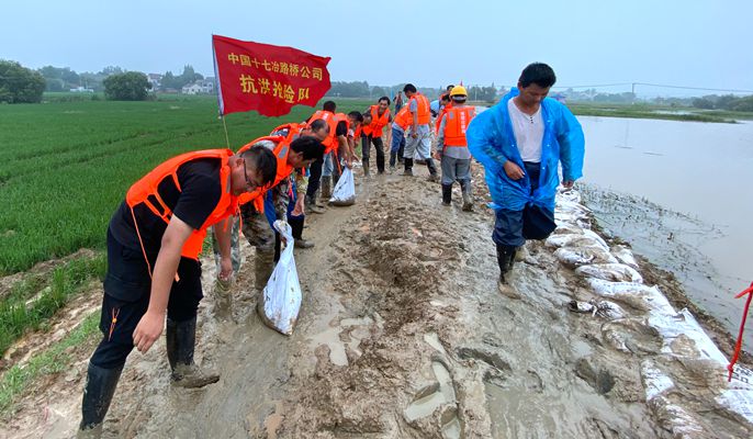 7月19日,中国十七冶集团路桥工程技术分公司博望区“宁博一体化”基础设施补短板EPC总承包项目展开抗洪抢险工作。