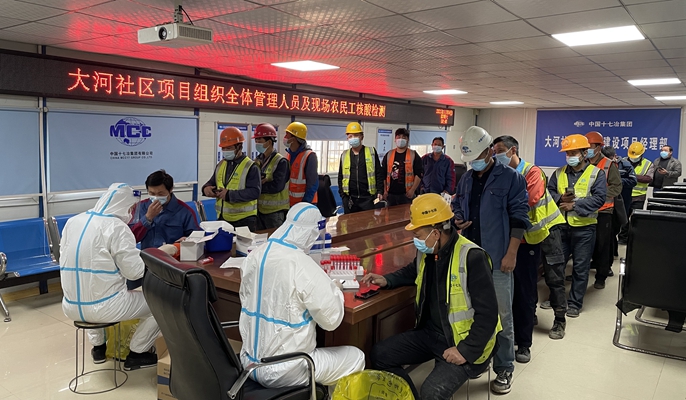 11月6日上午,中国十七冶集团郑州大河社区项目部邀请惠济区人民医院医务人员,为项目部管理人员及农民工共计715人进行新冠病毒核酸检测。
