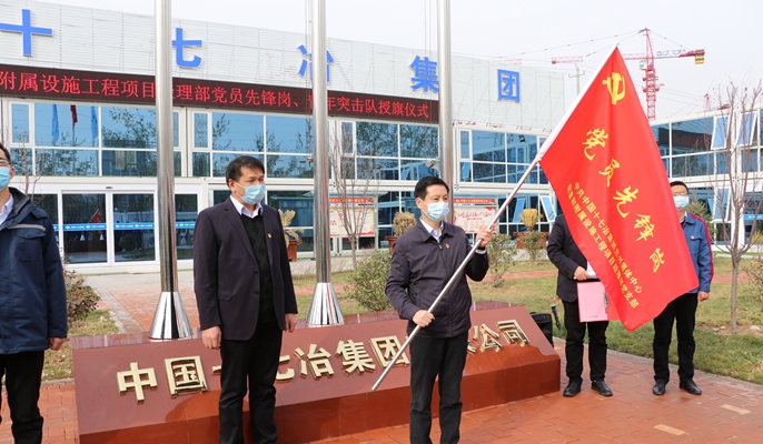 3月28日上午,中国十七冶集团甘肃分公司兰州奥体中心配套和附属设施工程项目经理部举行“党员先锋岗”和“青年突击队”授旗仪式。十七冶副总经济师、西北公司党委副书记孙才文,甘肃分公司党委书记、经理吴强,西北公司党委组织部副部长、团委书记周中奇,项目部党员和团员青年代表近50人参加授旗仪式。