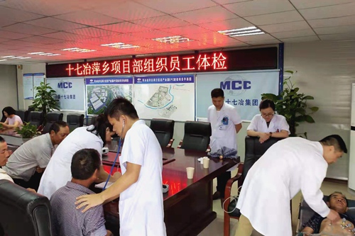 7月8日,为切实维护职工利益、关爱职工身体健康,做到“早发现、早预防、早治疗”,中国十七冶集团萍乡周江信息产业园项目部邀请当地医院医护人员为项目部员工进行健康体检。