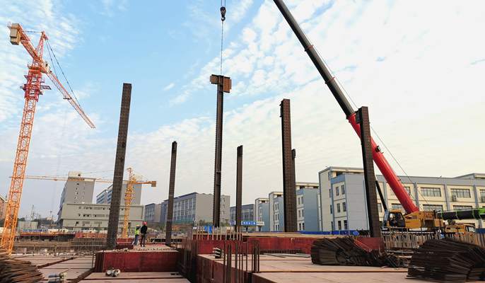 商业区位于居民区附近,体量大,单体多,作业面小,跨度大、高度高,又属于深基坑,施工难度大。为确保钢柱顺利吊装以及现场施工人员的安全,项目部积极做好前期准备工作,制定了周密详实的施工方案,对现场人、材、机等各项资源进行合理调配、精心组织安排,顺利完成节点任务。项目全体参建人员将齐心协力,确保各项工期节点按时完成。